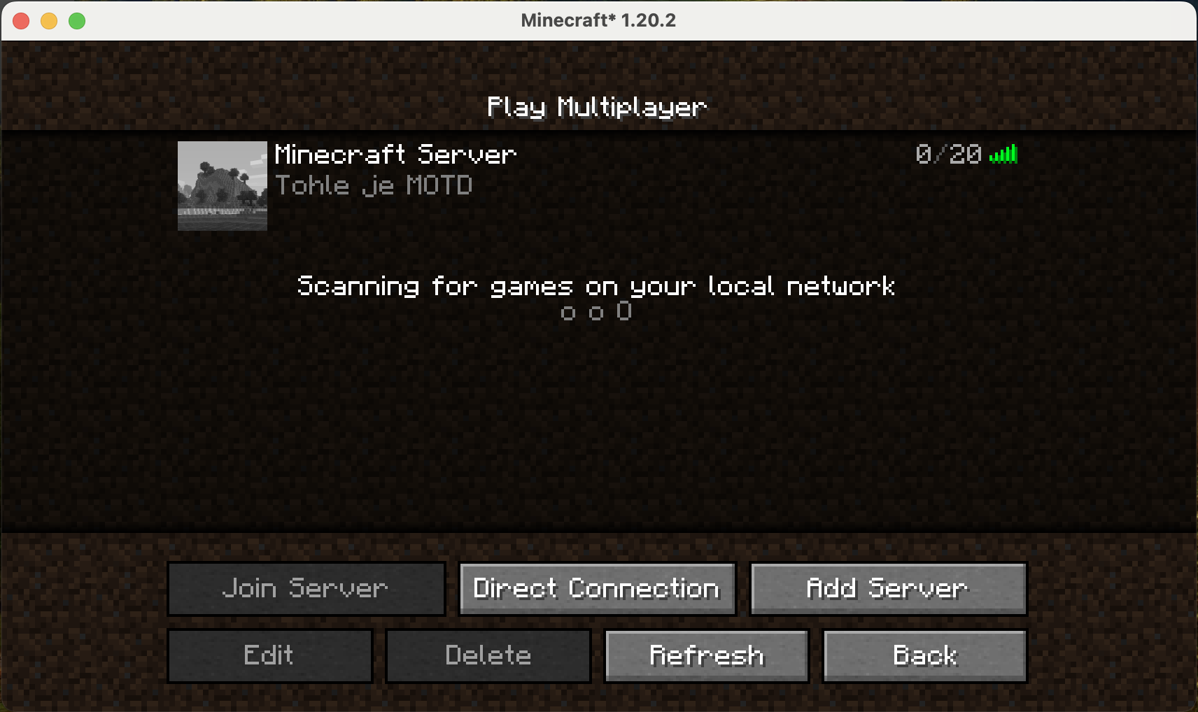 Na MOTD ale můžete využít i plugin, který nabízí více funkcí, jako dynamické MOTD, podporu HEX (RGB) barev, či text nalevo od ikony, jak je ukázáno na obrázku níže. MOTD pluginy mívají i funkci pro dynamický (či falešný playercount) a ukázání vlastního textu při hoveru.